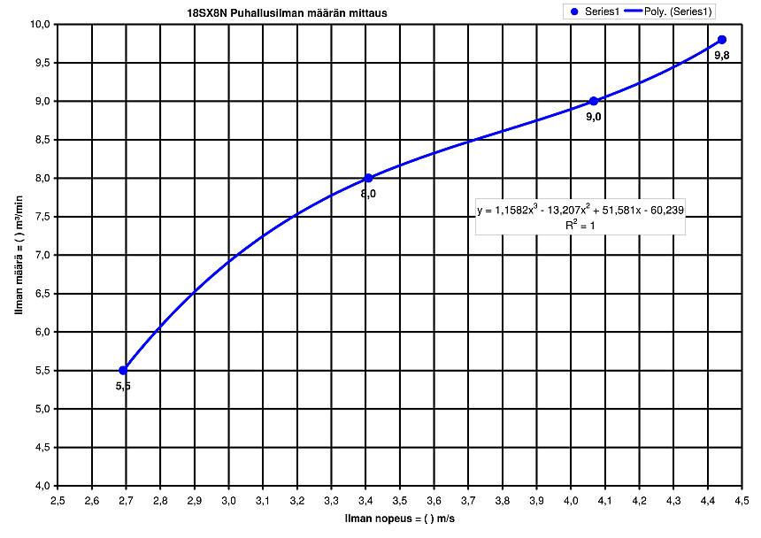 Ei taida kuitenkaan kotikonstein pystyä selvittämään noita tarkkoja ilmamääriä joten olisi hyvä jostain saada luotettavat arvot. Sen jälkeen pystyy kyllä mittailemaan myös AUTO-puhalluksella mittaamalla kierroslukuja.