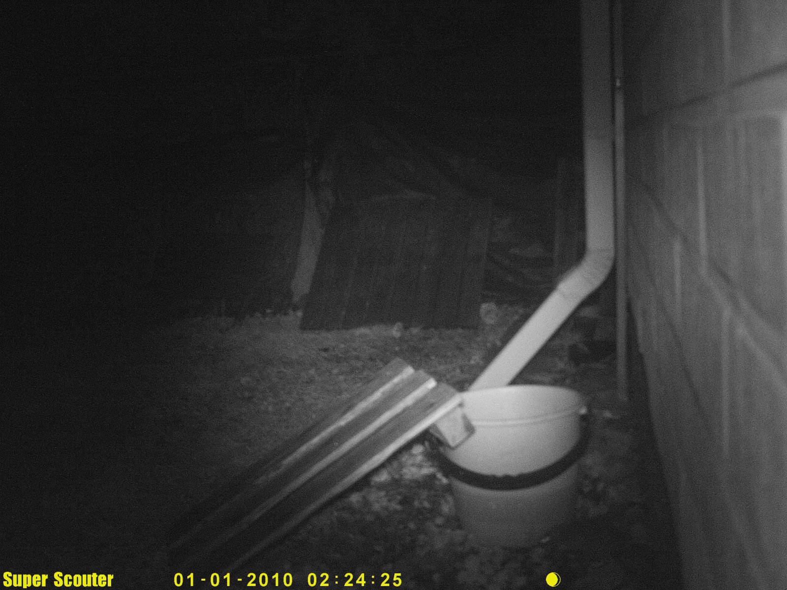 Joo, pistin riistakameran kuvaamaan ämpäriansaa, että saisi selville että miten kummassa on leikkeleet lähteneet styroksin päältä.