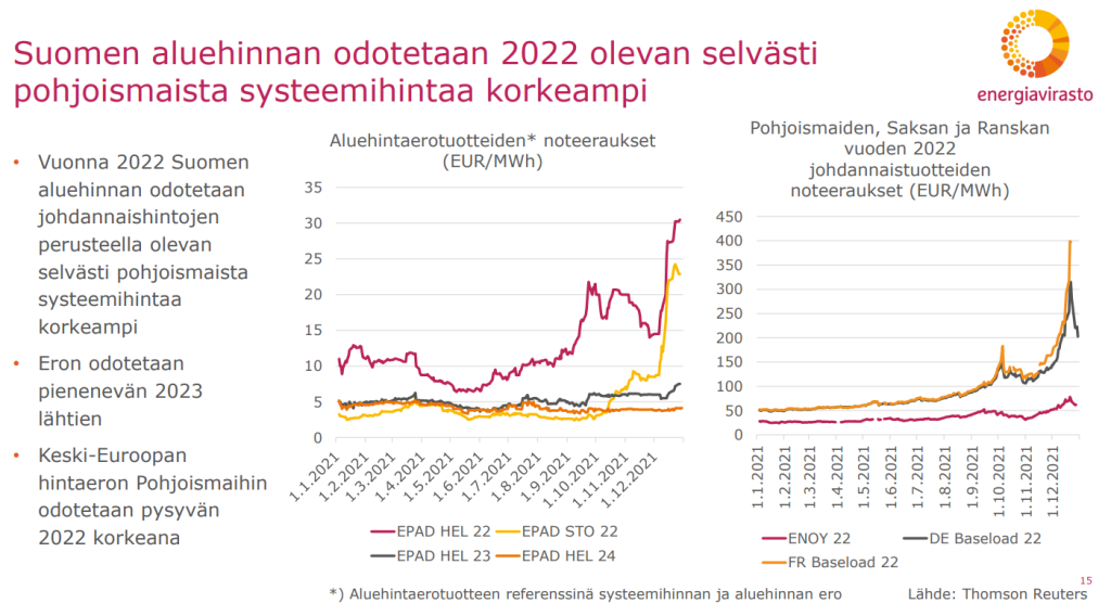 Sähkön tukkumarkkinahintojen voimakas nousu näkyi vuoden loppupuolella etenkin sähkösopimuksen uusijoille – uusien toistaiseksi voimassa olevien sopimusten tarjoushinnat nousivat kotitalouksille 48,3 prosenttia ja sähkölämmittäjille jopa 108,5 prosenttia. Uusien kaksivuotisten määräaikaisten sopimusten hinnat nousivat kotitalouksille 77,6 prosenttia ja sähkölämmittäjille 84 prosenttia. Myös toimitusvelvollisuushinnat nousivat jyrkästi: kotitalouksille 59,7 prosenttia ja sähkölämmittäjille 72,8 prosenttia.