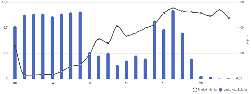 Tasainen kulutus tarkoittaa tasaista hintaa... kuulostaa ihan kiinteältä sopimukselta.Vielä hetki sitten oli hyvä juttu että keskellä yötä kun sähkön kulutus on pienintä niin käytettiin sitä sähköä eikä pistetä klo 7 aamulla kaikkea lataukseen. Nyt sit onkin tahtotila että olisi mahdollisimman tasainen sähkönkulutus ympäri vuorokauden.