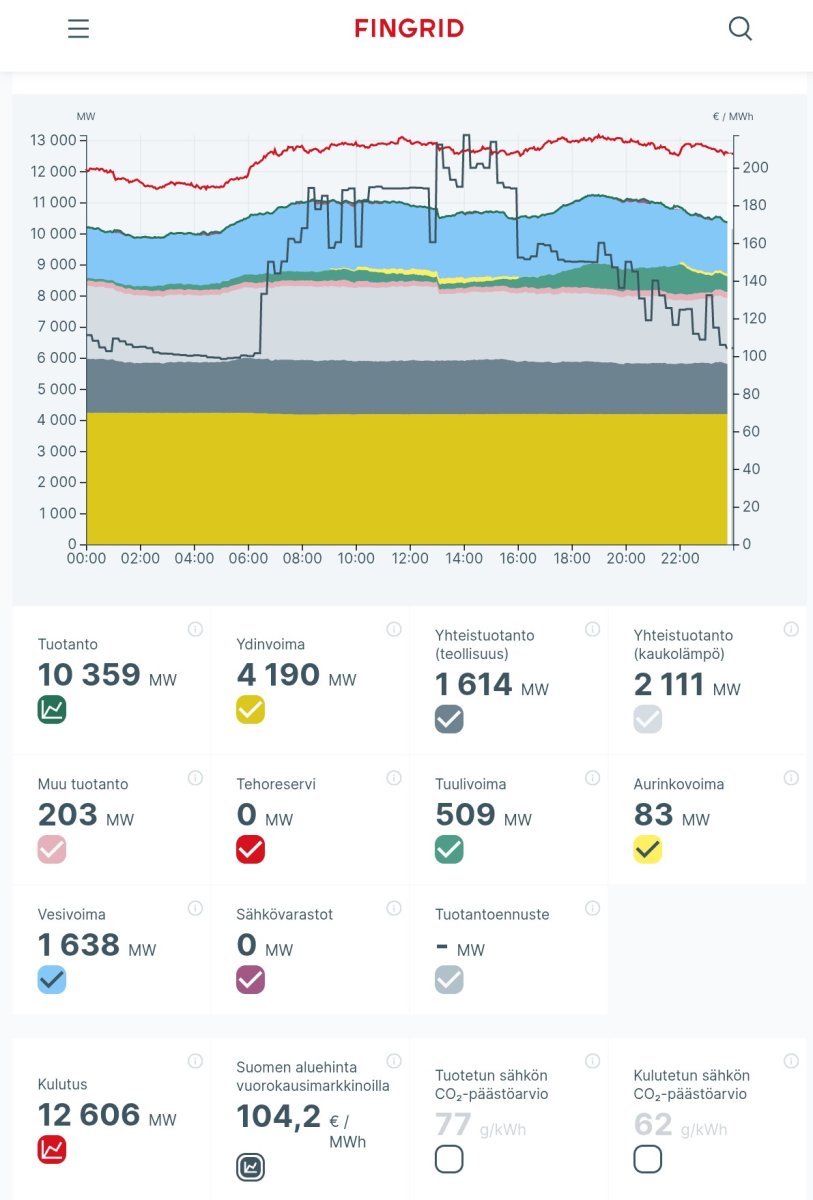 Olisiko tuo kannattanut purkaa nyt päivällä kun siitä saa tuplahinnan? Tilanne kesti 22-05 eli 7 tuntia, siinä olisi purettu 580 MWh energiaa eli noin 6000 ison sähköauton akullista. Onko meillä tuollaisia varastoja?