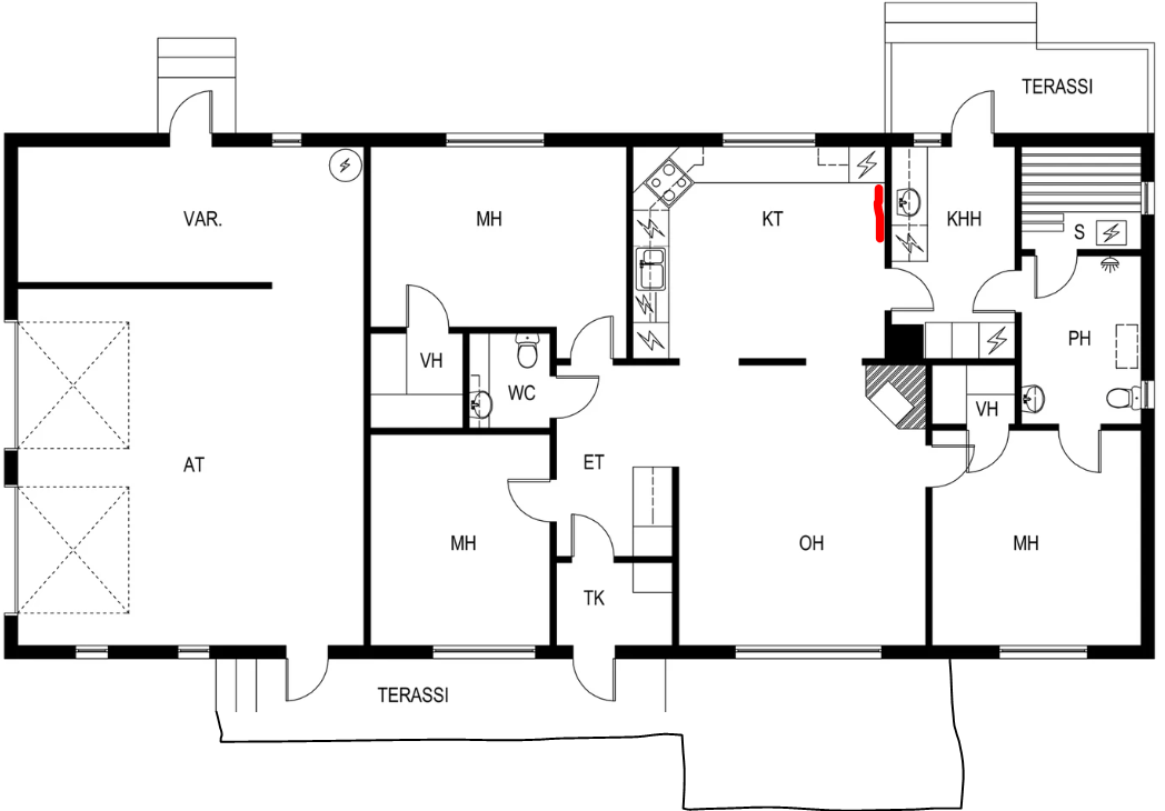 Tarkoitus päivittää talon ILP päätarkoituksena lämmitys. Nykyinen sisäyksikkö on asennettu punaisella merkittyyn paikkaan, josta kondenssivedet johdettu KHH:n pesutornin viemäriin.