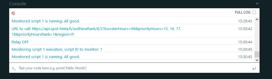 Onko tuosta skriptistä mahdollista ajaa samalle releelle kaksi eri sääntöä (Settings - Rule 1 ja -2), vaikka ne on ainakin alunperin tarkoitettu kai eri releille? Skriptissä ei näytä oleva mahdollisuutta määritellä "kieltotunteja" tai "lupatunteja" jos olisi niin toisen setapin voisi parametroida halvimmille tunneille ja toisen halvimmille iltapäivän tunneille. Meni selitykset hieman monimutkaisiksi :)