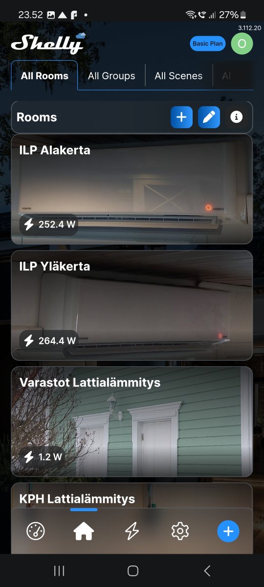 Mulla on nyt 5 kpl RuuviTageja Home Assistantissa kahden ESP proxyn kautta. Molempien pumppujen puhalluaukossa on yhdet, toisesta piti ottaa se kansi pois, jotta mahtui, mutta kuulemma reagoikin näin paremmin muutoksiin. Sitten on yksi pesuhuoneessa ja molemmissa kerroksissa omansa mittaamassa huonelämpöjä.