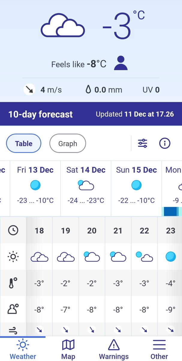 Täällä ehti jo ennuste muuttumaan ja voi olla että testikelit jää haaveeksi. Sulle näyttää vielä tulevan näpäkkää pakkasta niin ooppa hereillä mittareiden kans