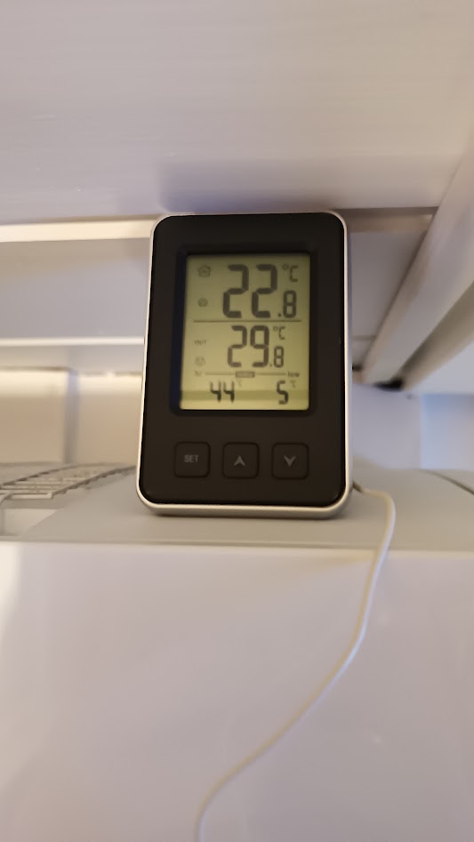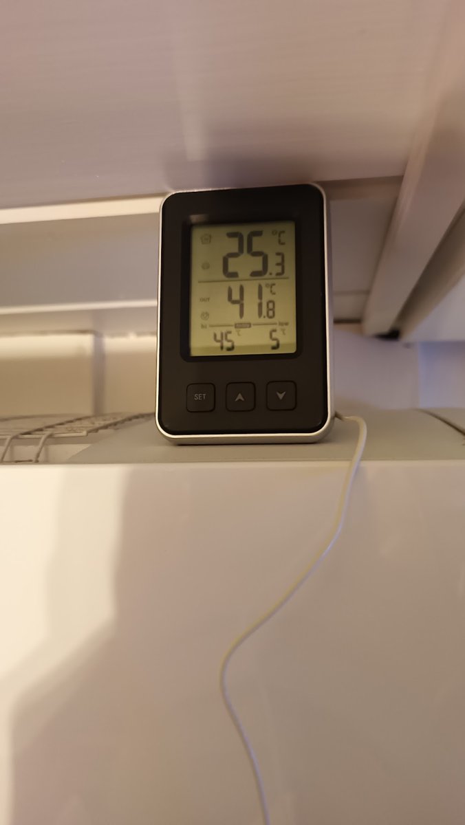 Kuten olen ennenkin sanonut, niin näihin kotimittauksiin kannattaa suhtautua suuntaa-antavina. Huomasin, että mulla oli sivuttaissuunnan viuhka päällä eilen. Jos laitan puhalluksen suoraan, niin mittarin lukema antolämpö putoaa. Ja anturin paikkakin vaikuttaa, mulla nyt ylimmässä välissä.