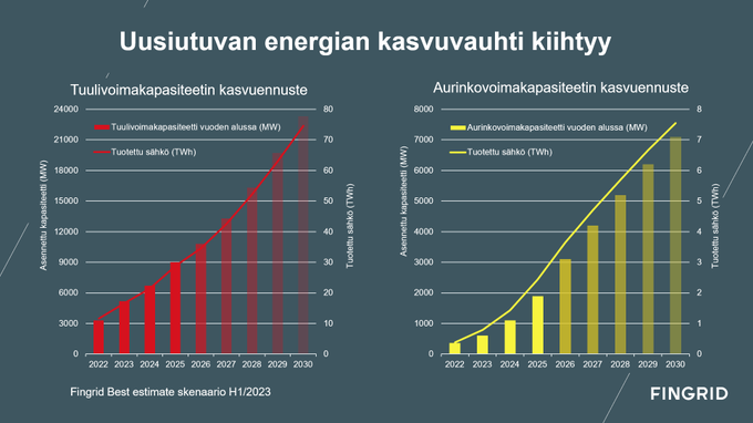 Tuossa tuore ennuste Fingridiltä. Kulutuksen ja tuotannon kehitysnäkymät Q3 2024. Lainauksessa näky vanhempi H1/2023.
