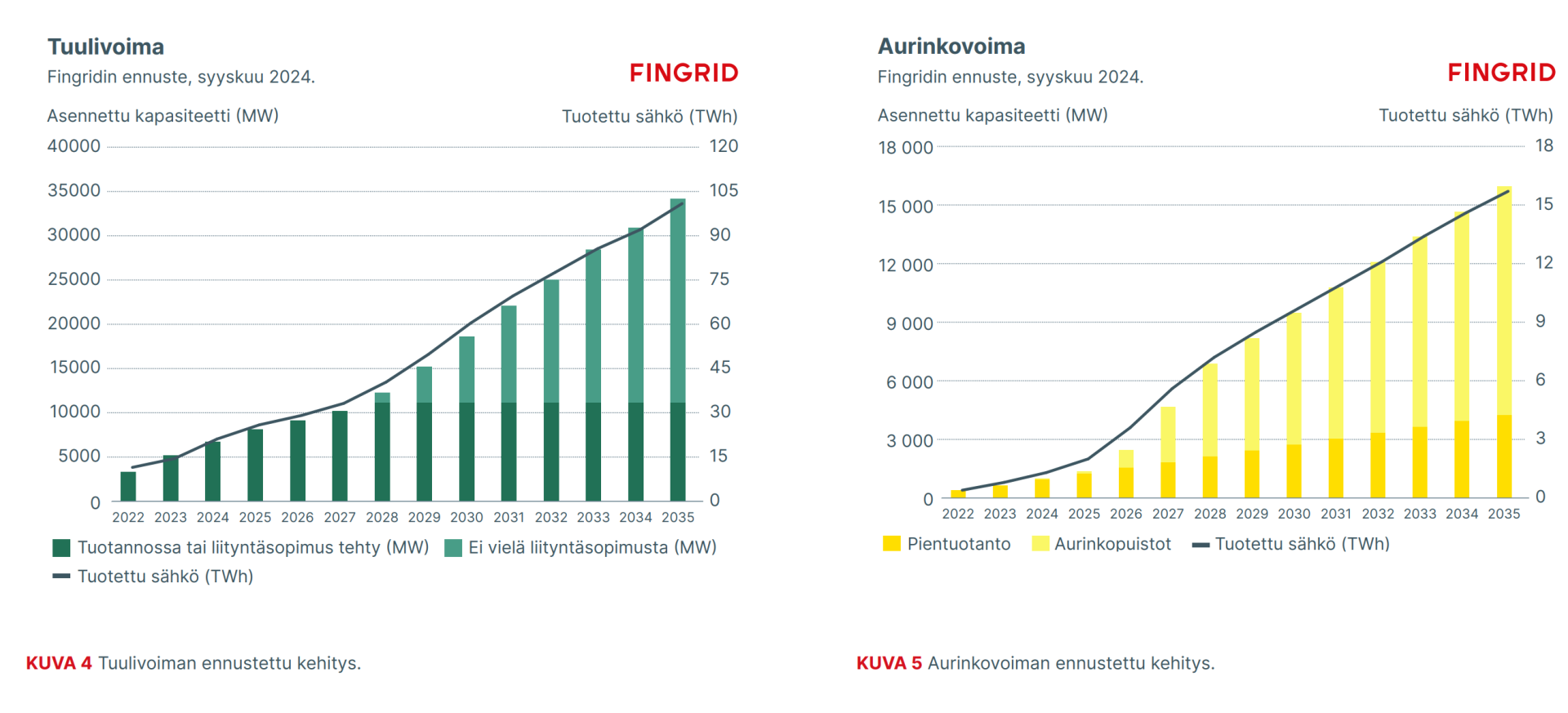 2027: tuuli 13000 MW → 11000 MW. Aurinko 4200 → 4700 MW.