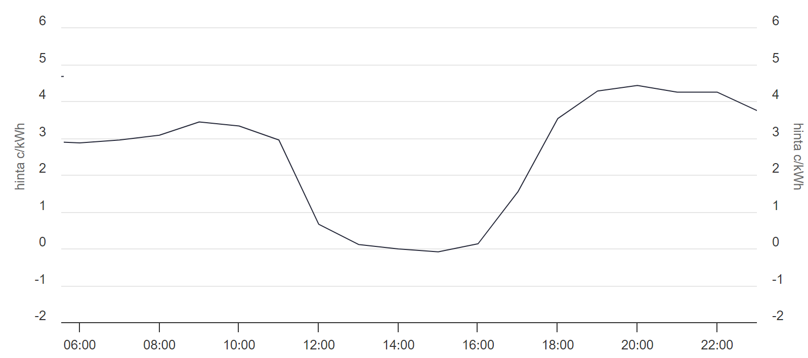 entäs tänään klo:15 hinta alhaalla paneleiden takia? sää klo15