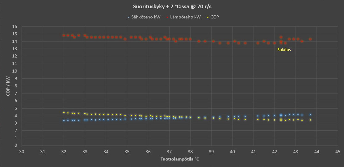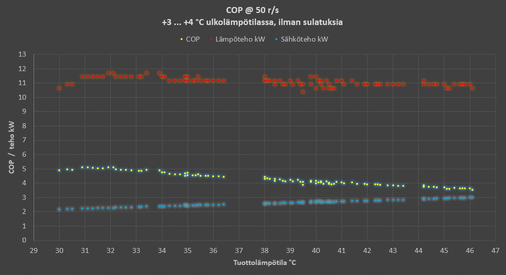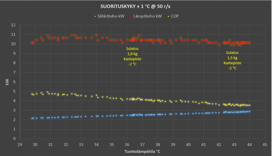 Vs: Vesi-ilmalämpöpumppujen ( VILP ) COP, tehot ja sulatukset