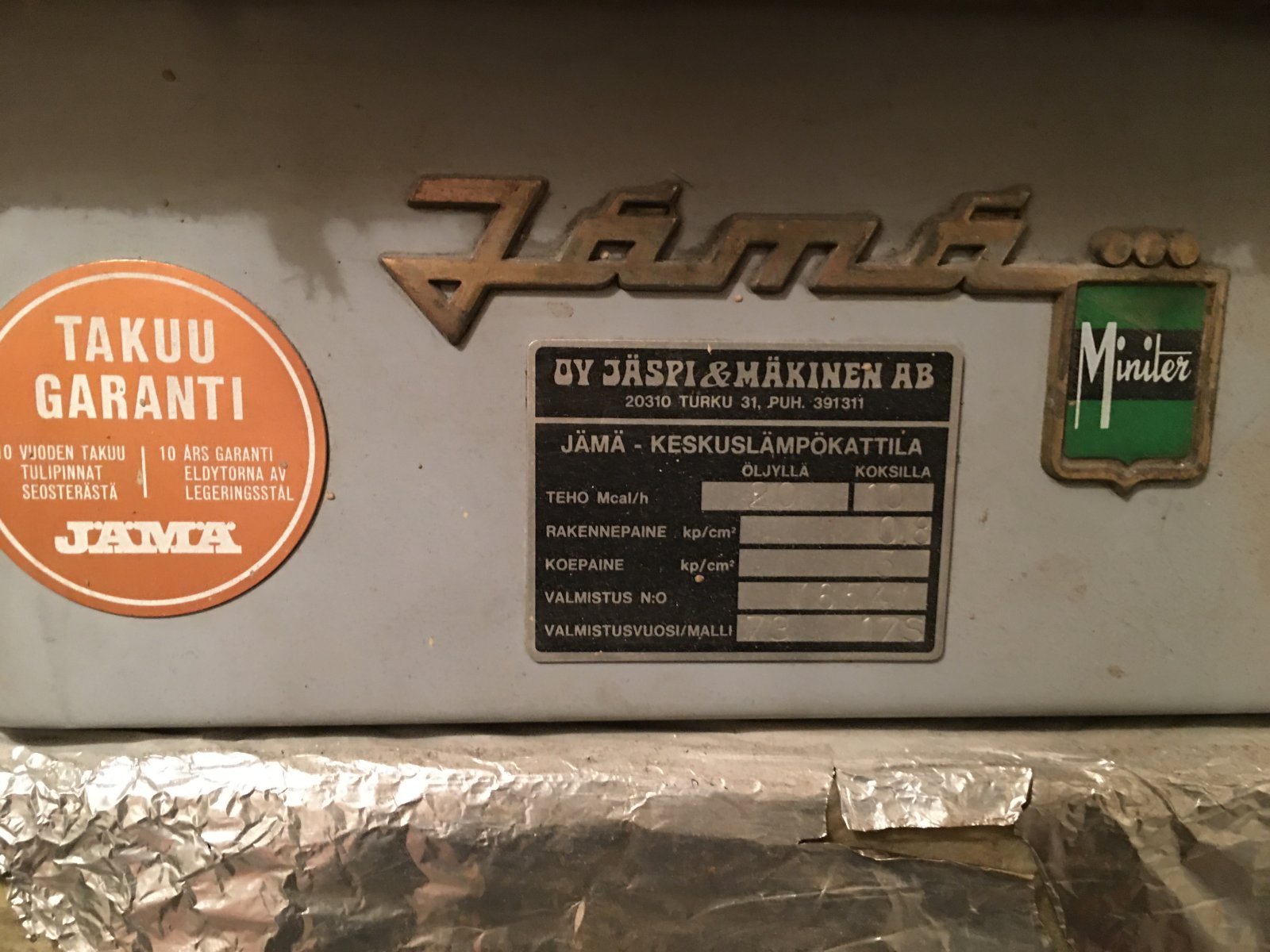 Kyllä tuon ikäinen jämä alkaa jo eläkeiässä olemaan, se kun ei ole valurautaa ja olisi hyvä patterilämmöillä ainakin lisäeristää. Oma -67 jämä miniter kaksoiskattila alkoi tihuttamaan jo reilu 10v sitten ja meni vaihtoon. Pannuhuone kävi kesällä saunasta.
