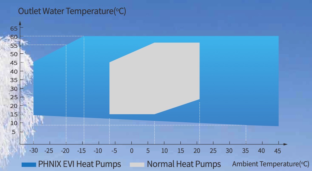 "Laitteen kyky tuottaa kuuminta lämmitysvettä ei alene ulkolämpötilan laskiessa kuten perinteisissä ratkaisuissa, vaan 65-asteista lämmitysvettä saadaan tuotettua jopa –25 °C pakkasille asti."